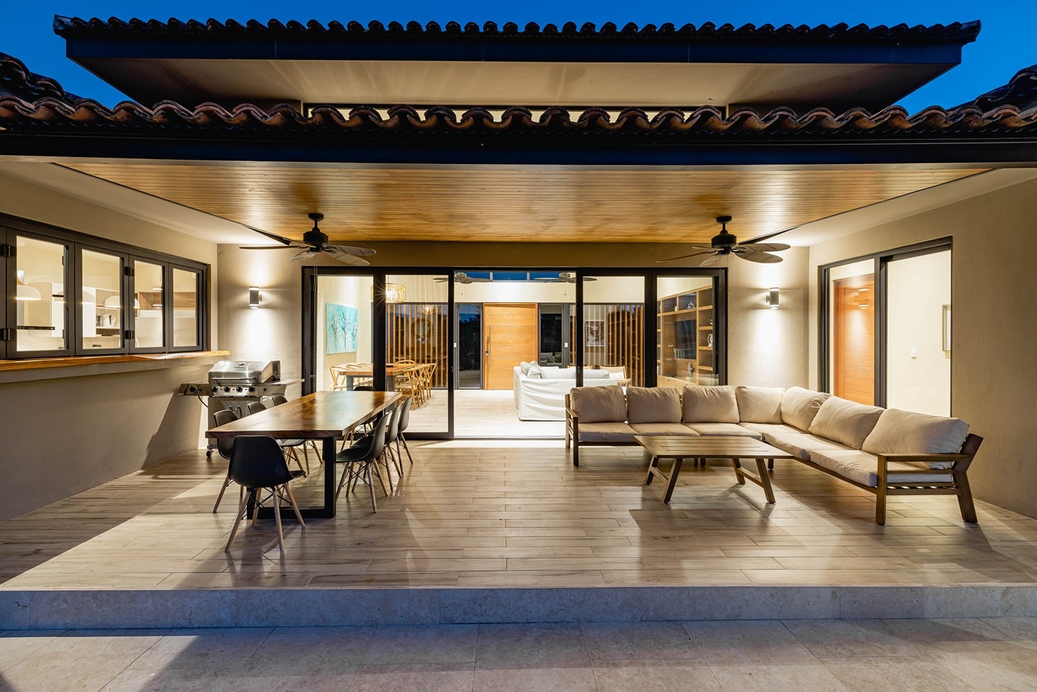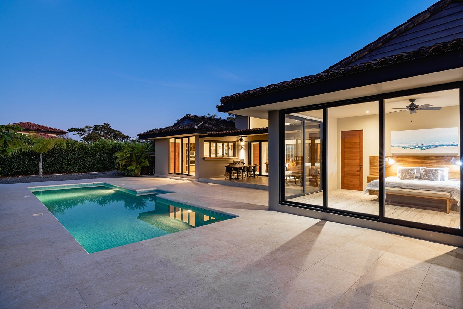 🌅 Indoor–Outdoor Living – Expansive living area with sliding glass doors opening to the terrace and pool.
