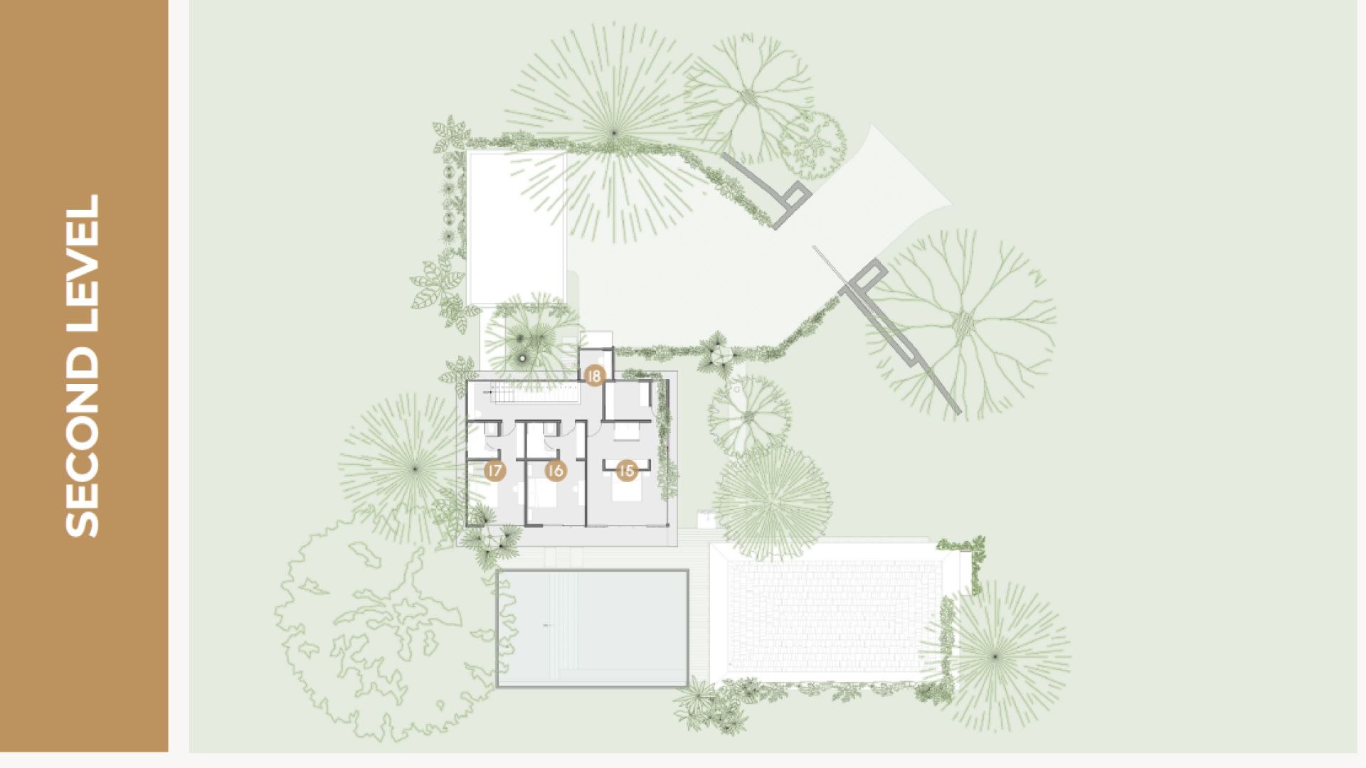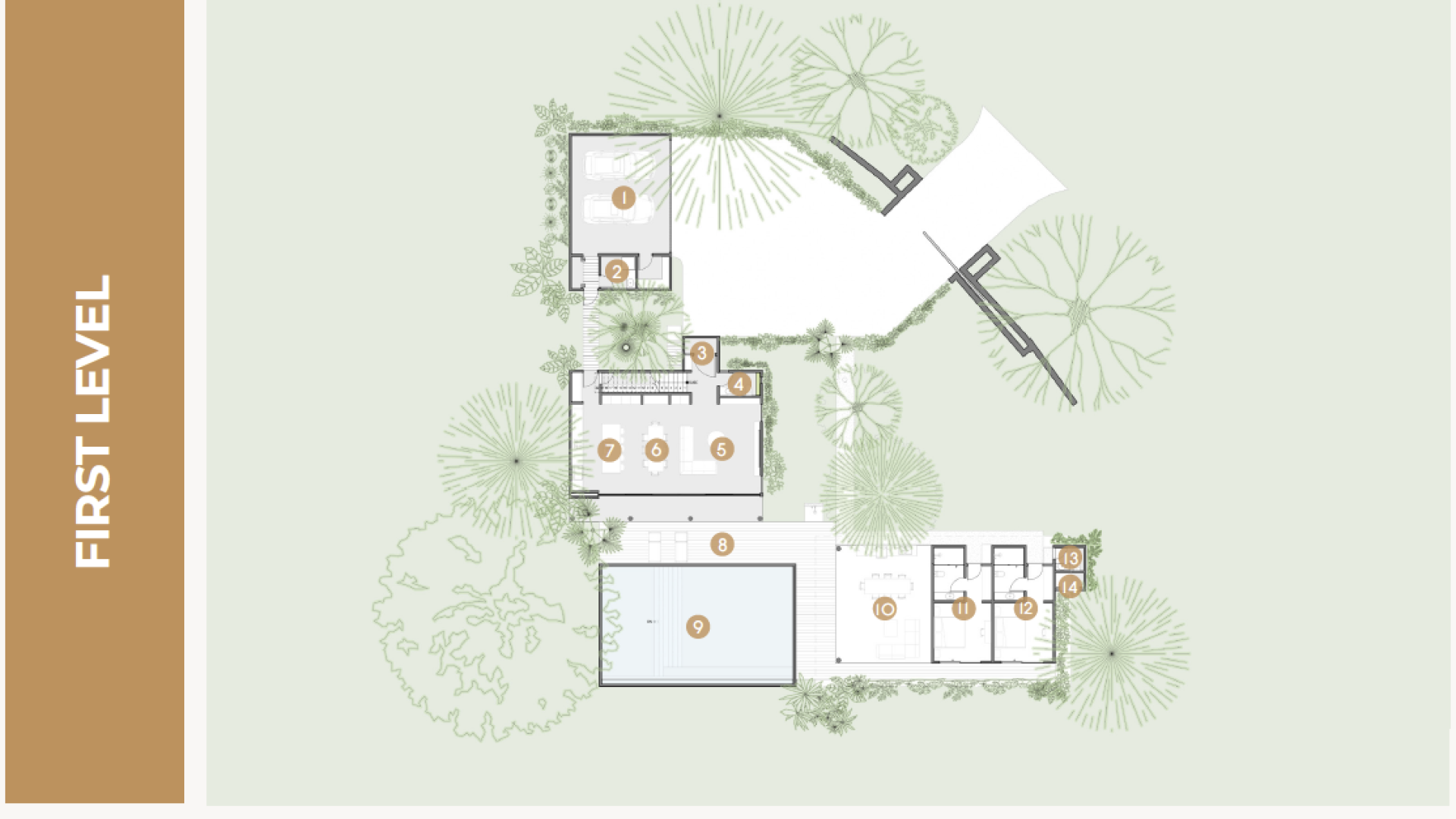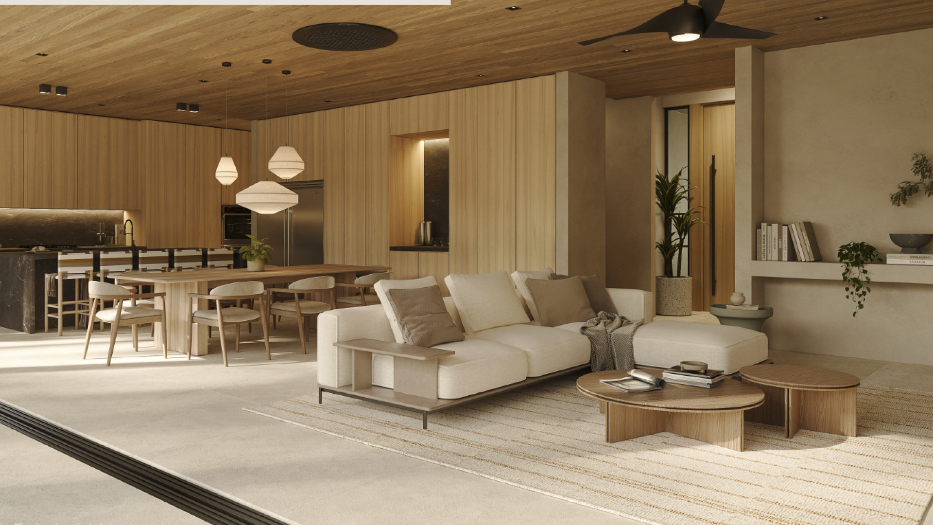 This residence includes a 3-bedroom main house and a 2-bedroom detached villa with private garden patios and outdoor showers — perfect for guests or multi-generational living.