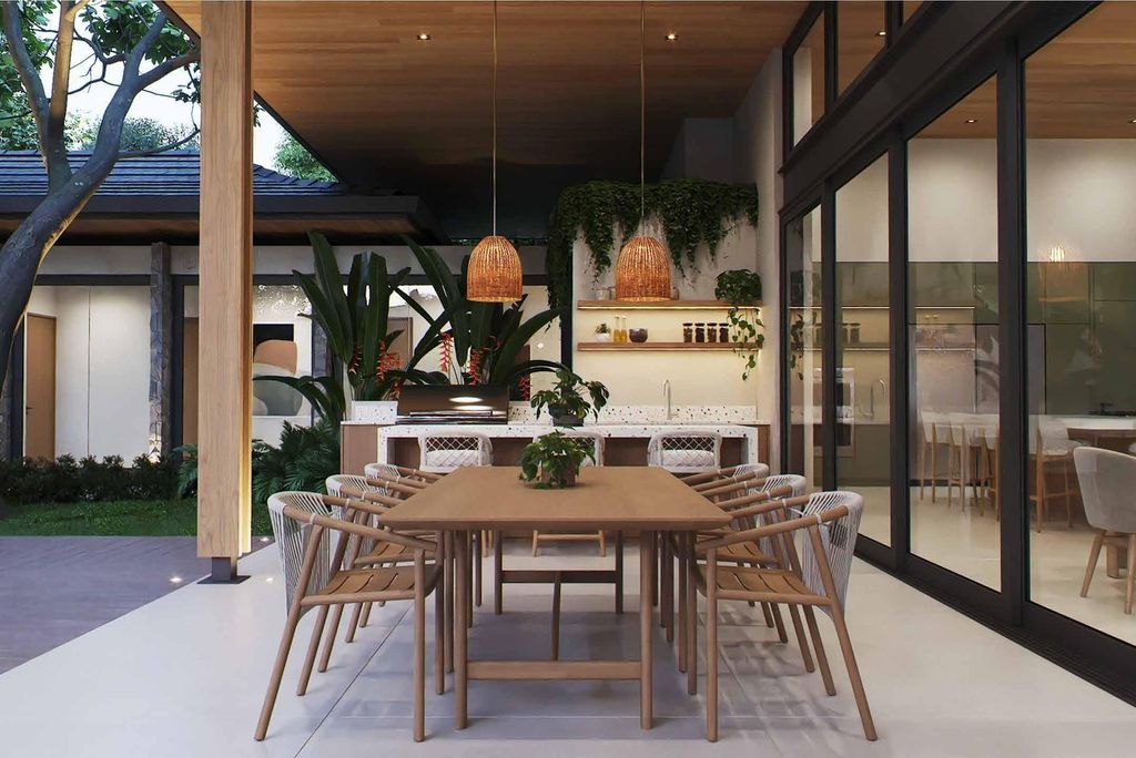 Outdoor spaces are designed for leisure and entertainment, featuring a covered BBQ area, alfresco lounge, and expansive terraces that merge effortlessly with the natural surroundings. A double garage, maid’s quarters, and laundry area provide practicality and functionality.