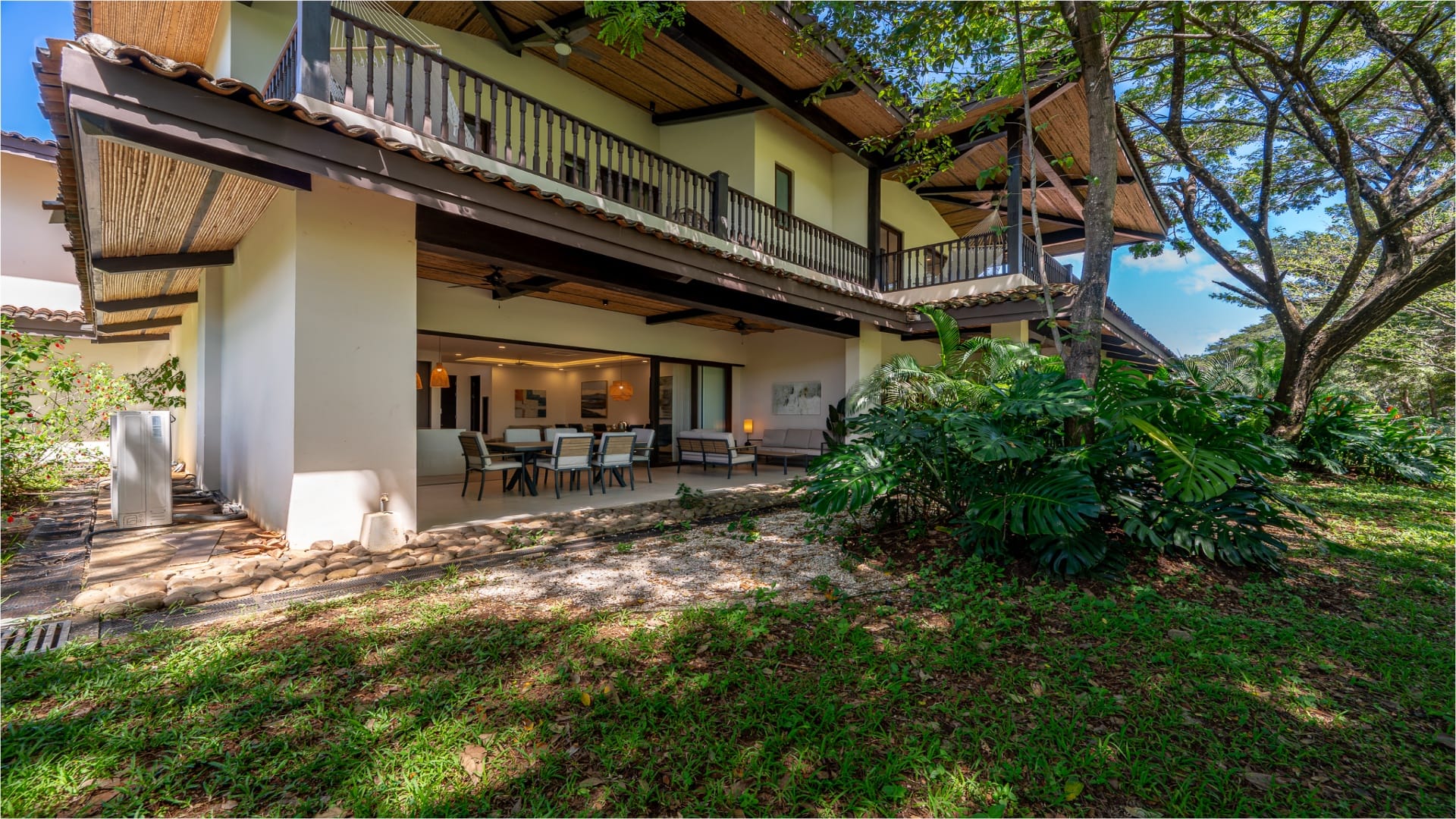 Located within the Los Malinches community, Malinches 27 enjoys a peaceful setting surrounded by large native trees, lush gardens, and traditional hacienda-style architecture inspired by Guanacaste’s ranch heritage.